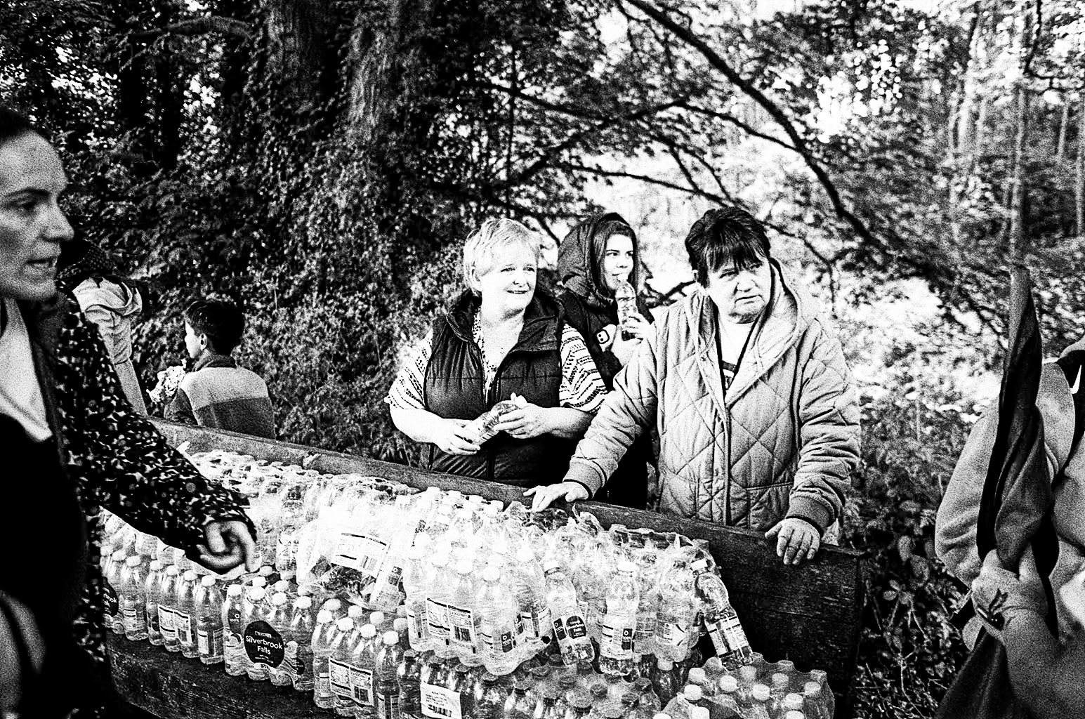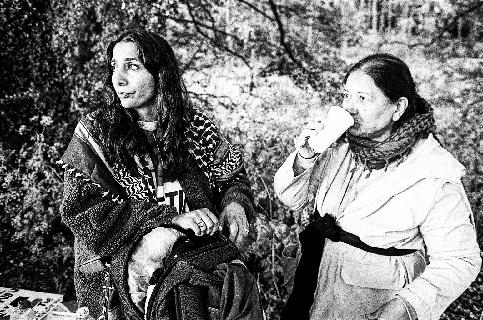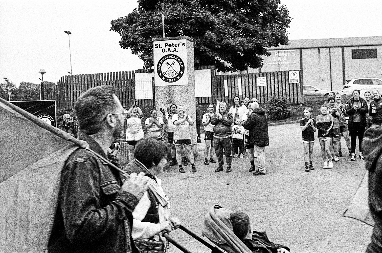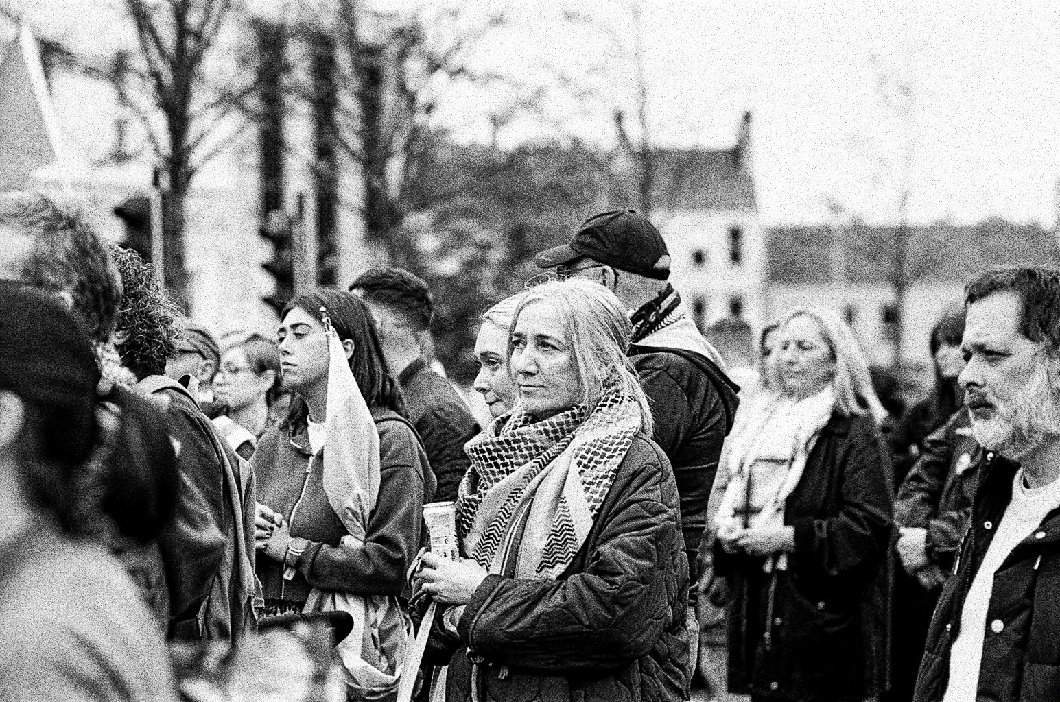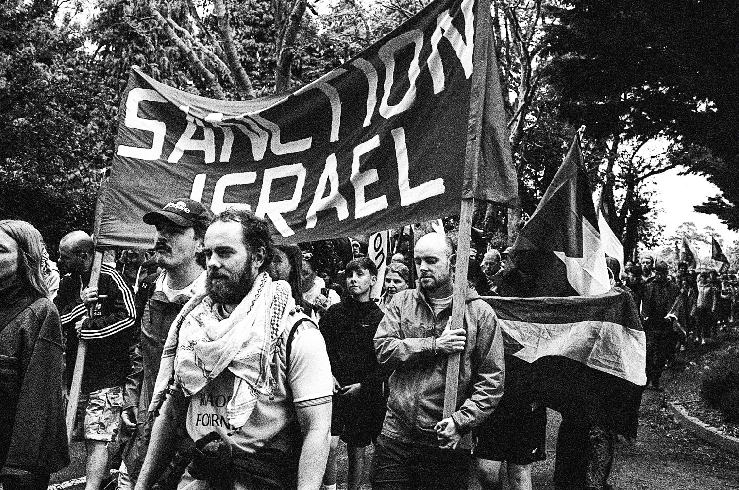 I documented several protests for Gazza including a long walk from Lurgan, County Armagh to Newry, County Down. I used the same equipment and film stocks of the mid-late 20th Century that covered US civil rights and anti Vietnam protests. My aim was to draw contemporary protest photos with pen and inks used by their historical forebears. Working in this fashion I hope to draw parallels and remove aesthetic differences to enable greater understanding.